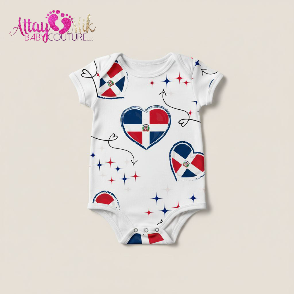 Wether you want to wear it on a cultural holiday or give it as a Dominican Republic flag gift for a baby shower this item is sure to be a hit!